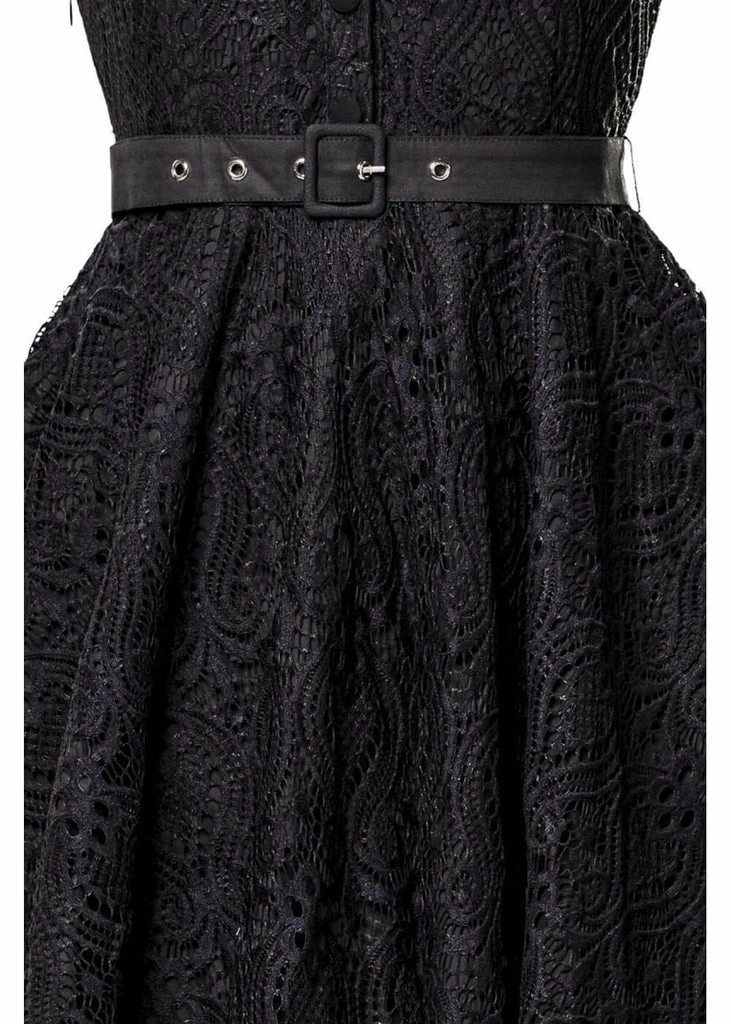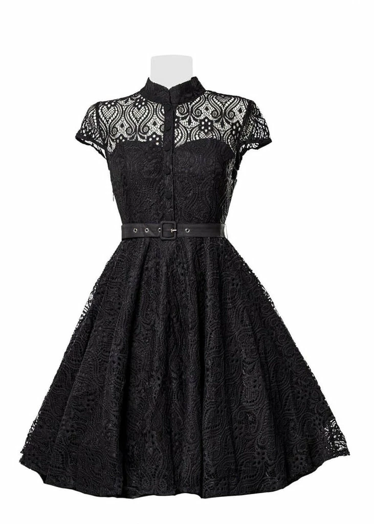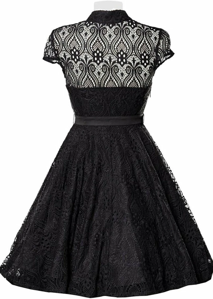 This absolute dream of a dress breathes 50’s elegance: a sweetheart neckline, the little standing collar and sensual lace covering the whole dress… Thanks to the underdress she’s not transparent, only around the shoulders and sleeves.