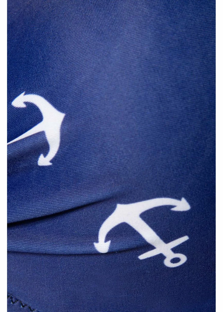 Ancohrs aweigh for this gem! This beauty has preshaped padded cups, a bow detail and adjustable shoulder straps for the perfect pin-up look. You tie the back, so it always fits you just right.
