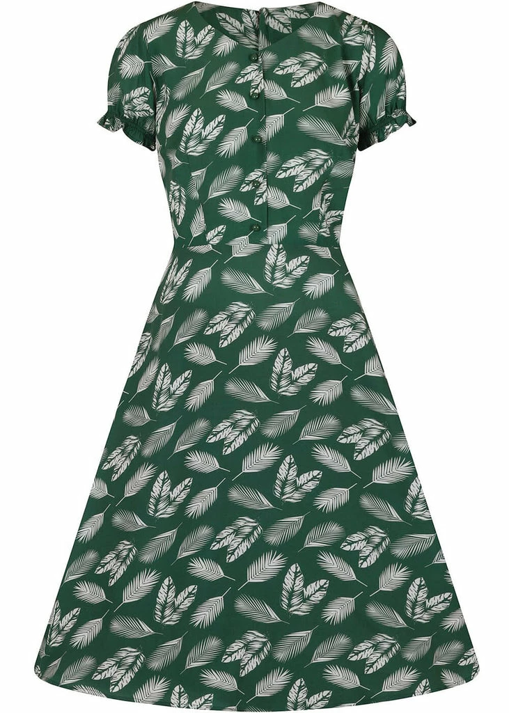Let yourself be hugged by the lovely soft and lightweight viscose without stretch, covered with a print of fresh leafs. The short sleeves are playfully puffy thanks to the gatherings at the shoulders and the fine elastic at the end of the sleeves, that are adorned with little ruffles.