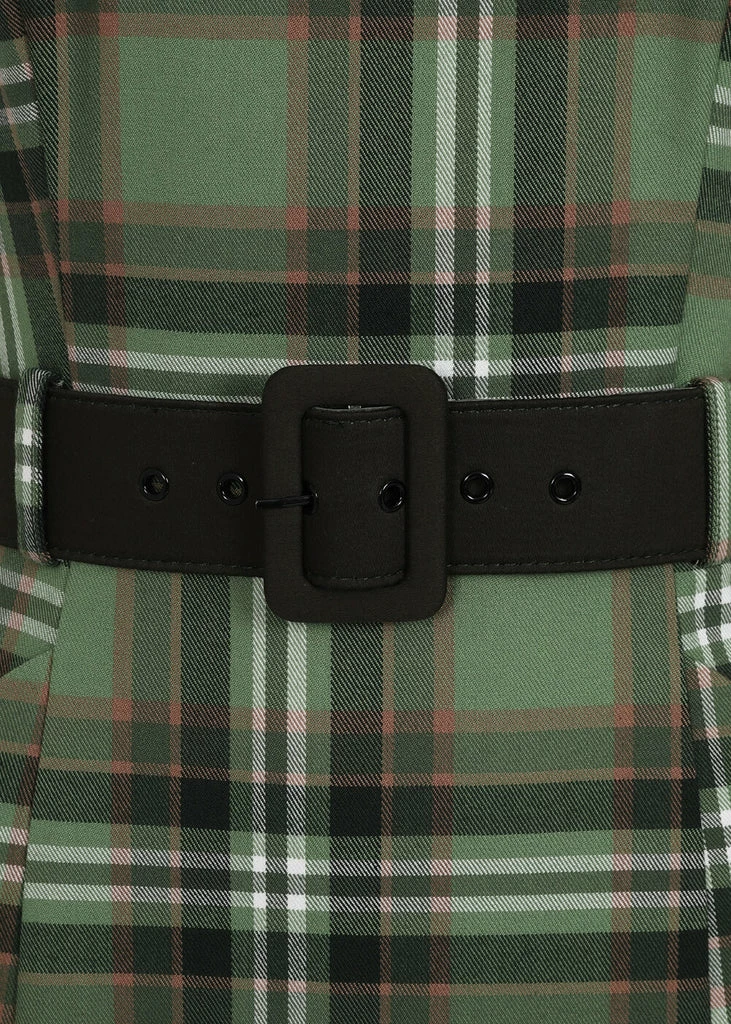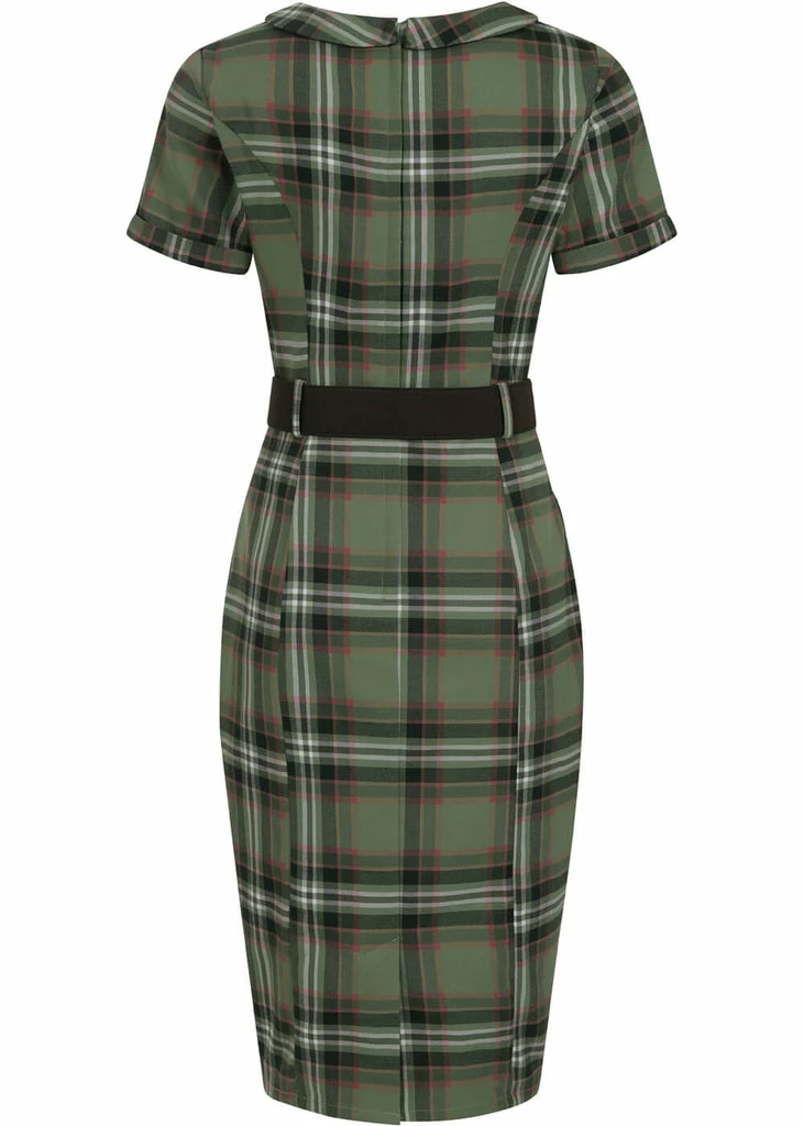 Collectif Pavel Dales Check 40’s Pencil Dress Green