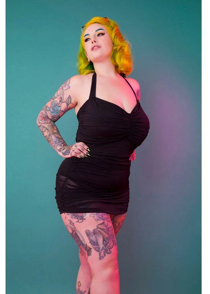 These vintage inspired swimsuits are super comfortable thanks to their lovely amount of stretch. This swimsuit is pleated on the chest from the middle for a seducing Pin-Up look. The cups are not wired, instead they have removable padding. The halter can be tied in behind the neck.