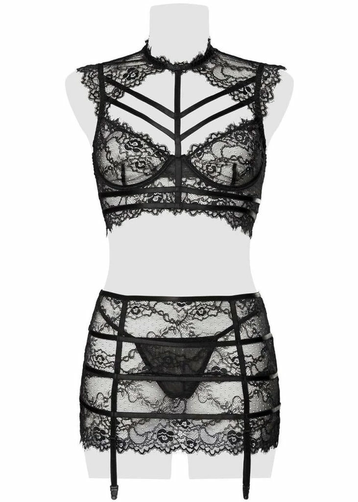 Grey Velvet Lizzy Lace Set Black