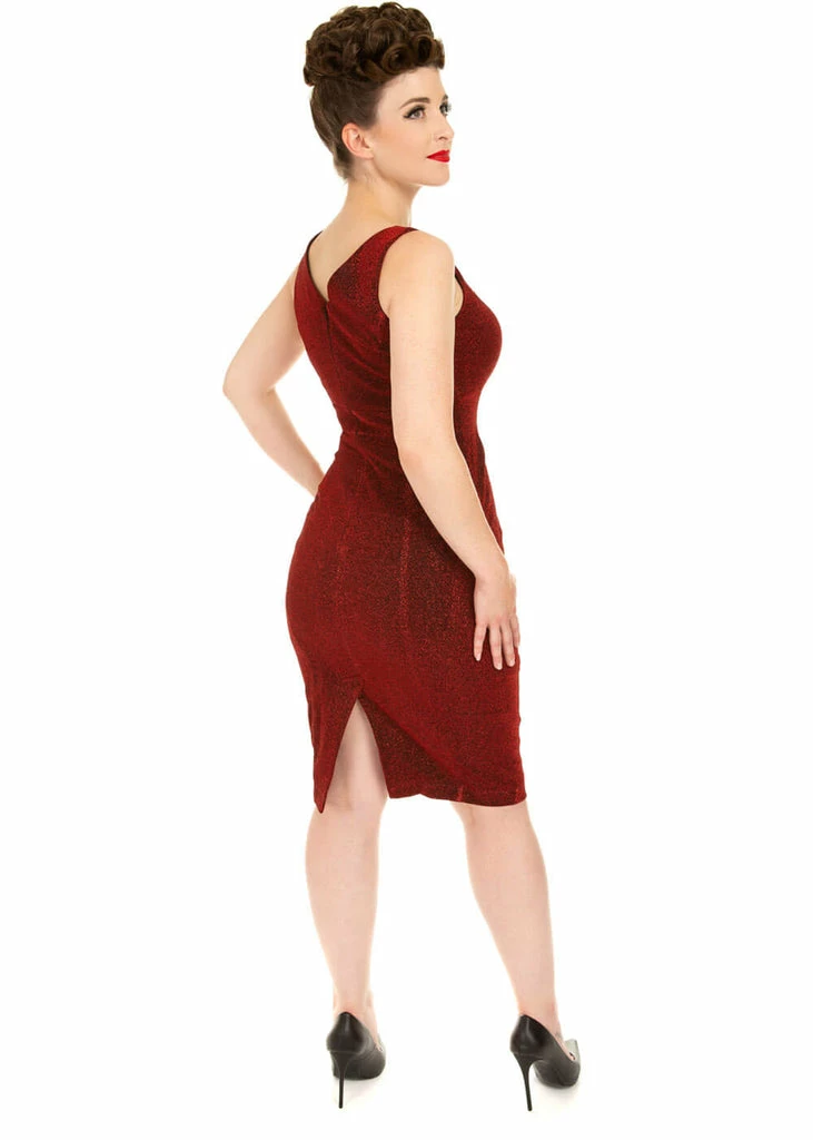 Hearts & Roses Ariel Sparkle 50’s Pencil Dress Red