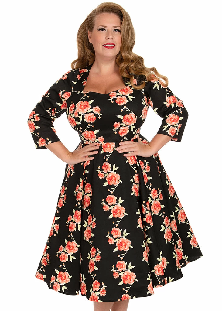 This beauty is pure vintage romance with her cotton mix with slight stretch and romantic pink roses. The heartshaped neckline and the Princess seams make for an irresistible look.