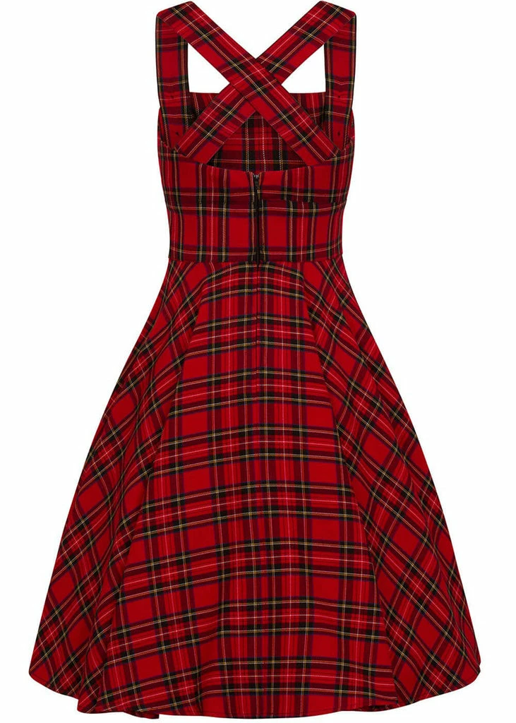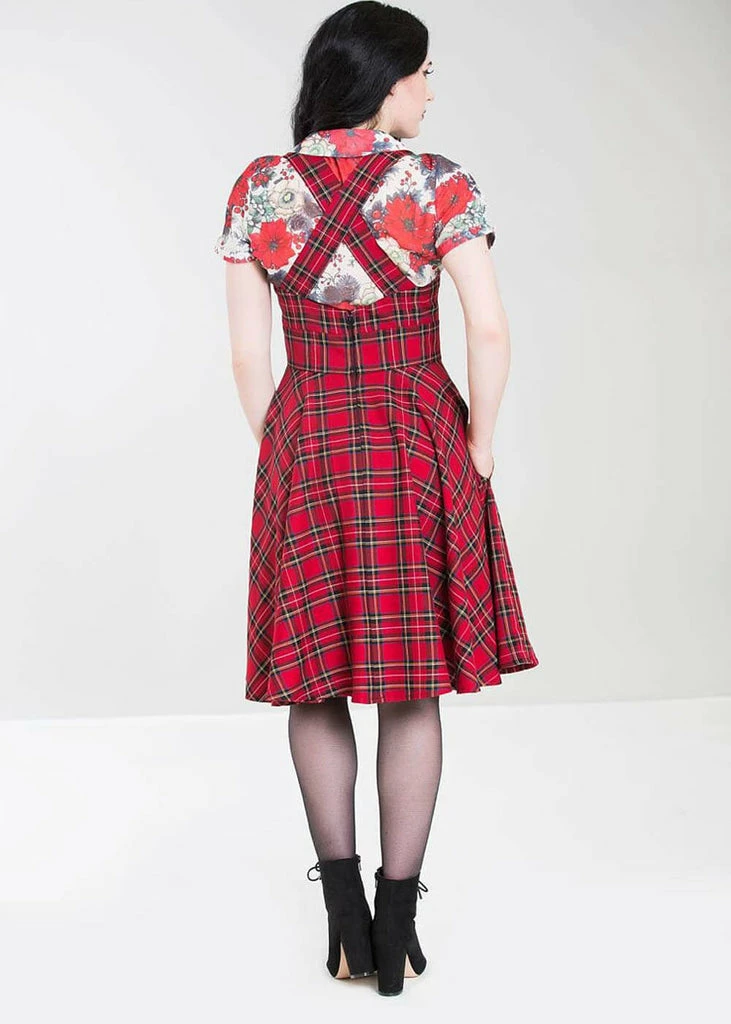 Pinafore dresses are so perfect for the Dutch weather, because you can endlessly combine them with cozy jumpers or an elegant blouse like on the images! This tartan version by Hell Bunny is right up our alley, with a fierce tartan motive with a slight stretch. The shoulderstraps cross on the back so they don’t fall off your shoulders. Because of the buttons you can adjust the straps with 7 cm.