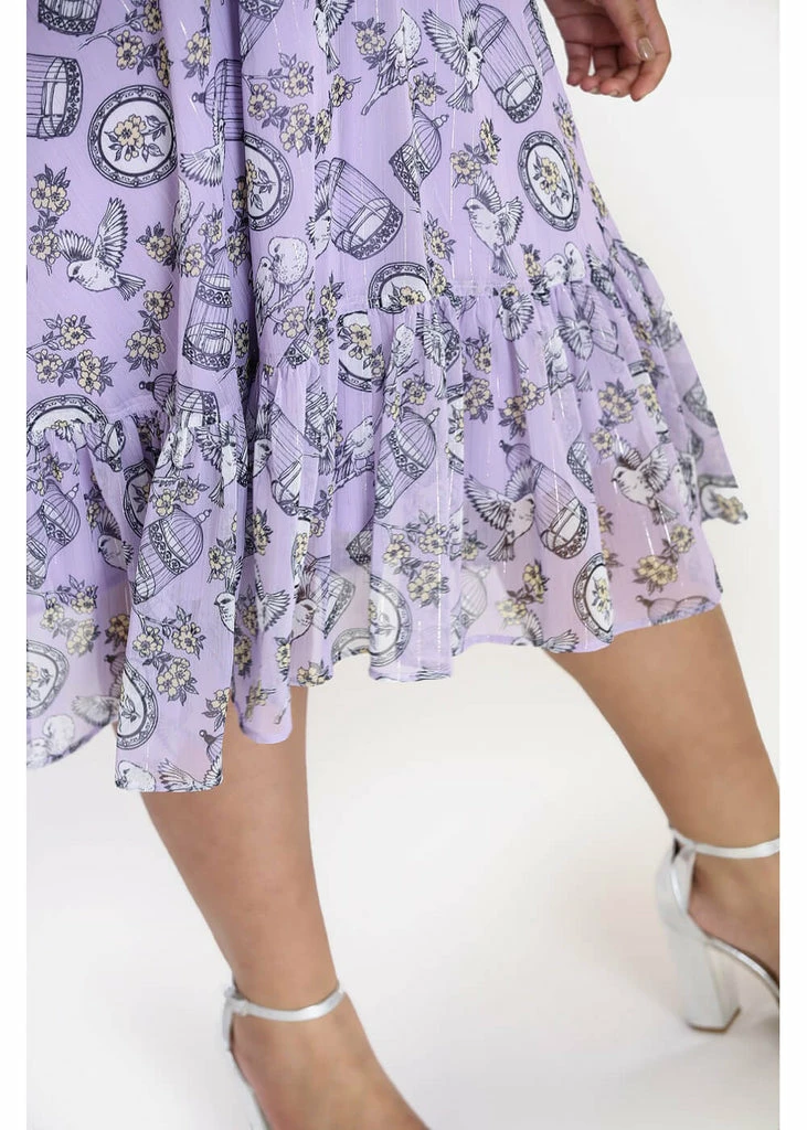 You’re seeing it correctly, there is sparkling lurex woven into the chiffon without stretch! She looks as festive as lightweight, and (except for the sleeves) she is completely lined, irresistible, right?