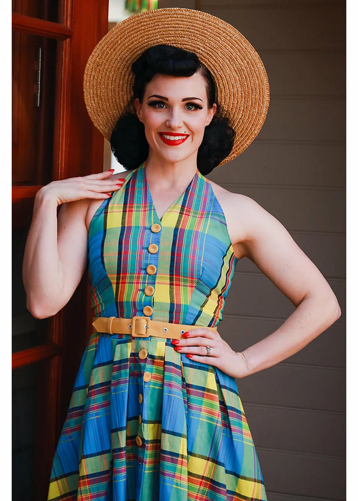 Summer tartan, yes! Miss Candyfloss is made in Transsylvania. This model runs a bit smaller, make sure to check the sizing chart.