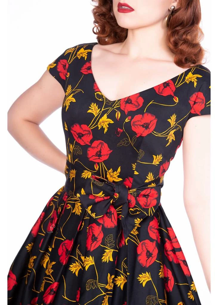 The waist is accentuated by a sash, down from which she flares out into a full skirt. She’s perfect for combining with one of our petticoats for the ultimate 50’s look! With a height of 1,70 she reaches down to the knee and closes with a zipper on the back.